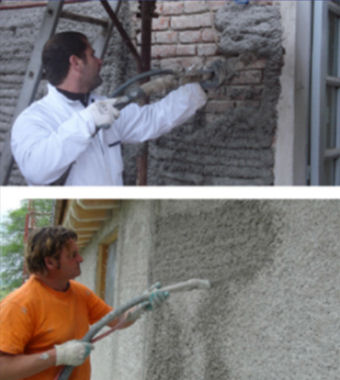 Revêtement thermique et acoustique avec du mortier léger de chaux et de granulés en liège, sur parement intérieur. |
